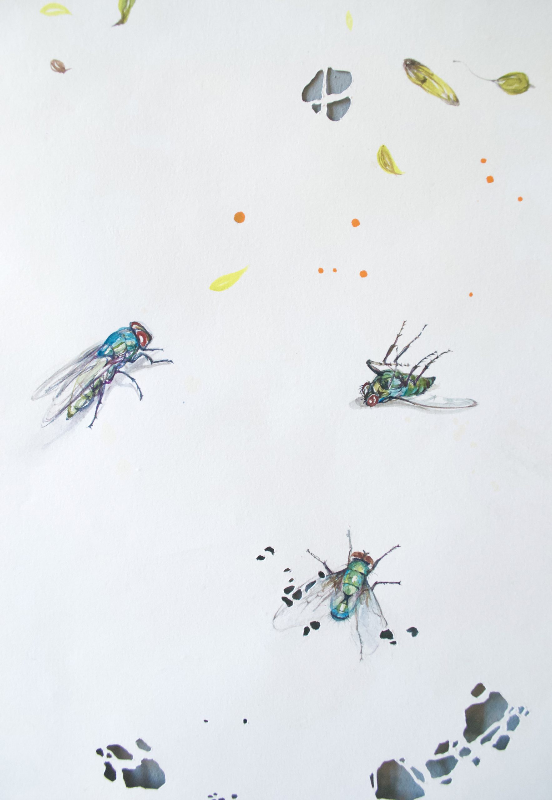 paper cut, watercolour on paper