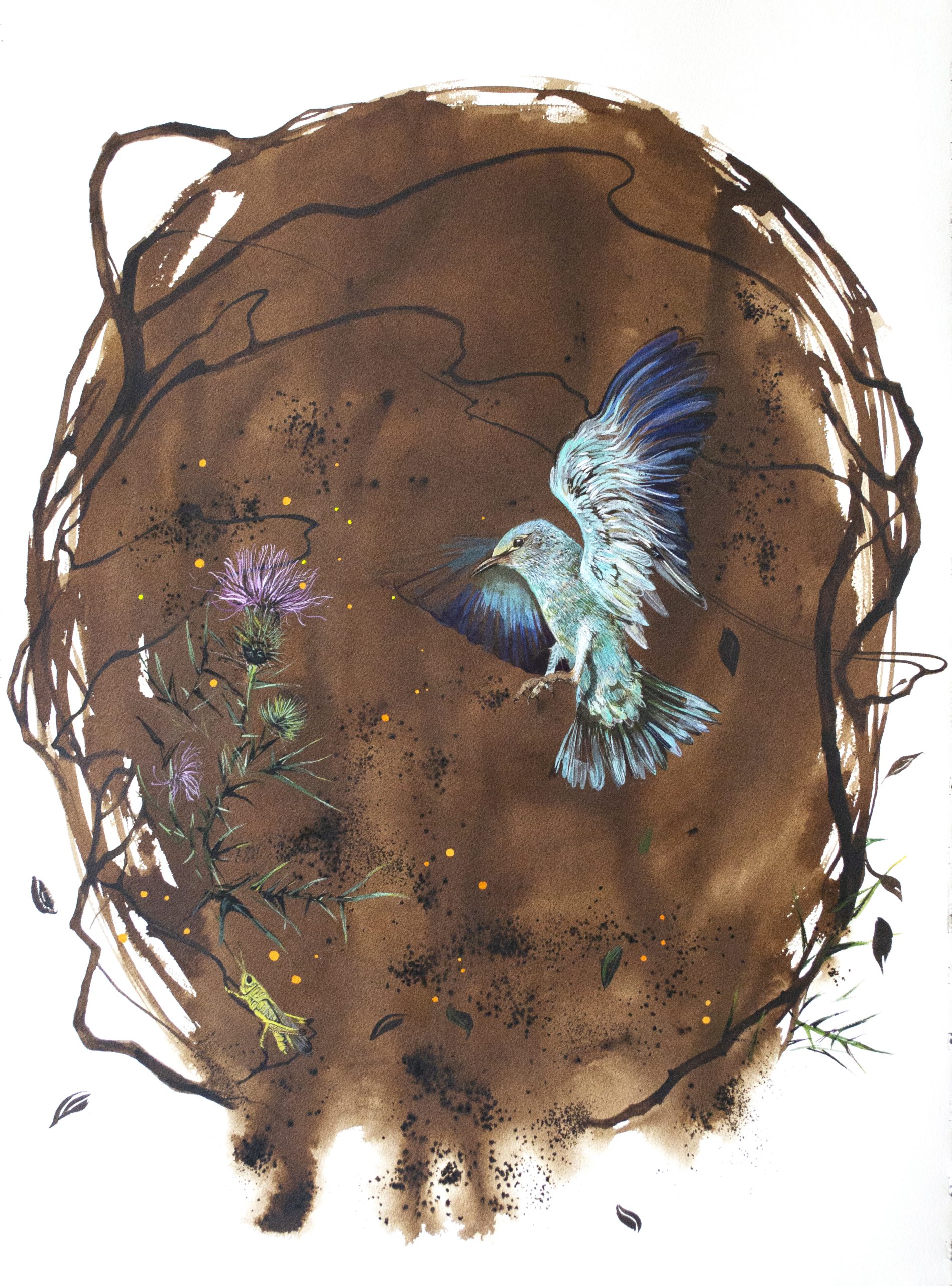 walnut pigment, watercolour, ink